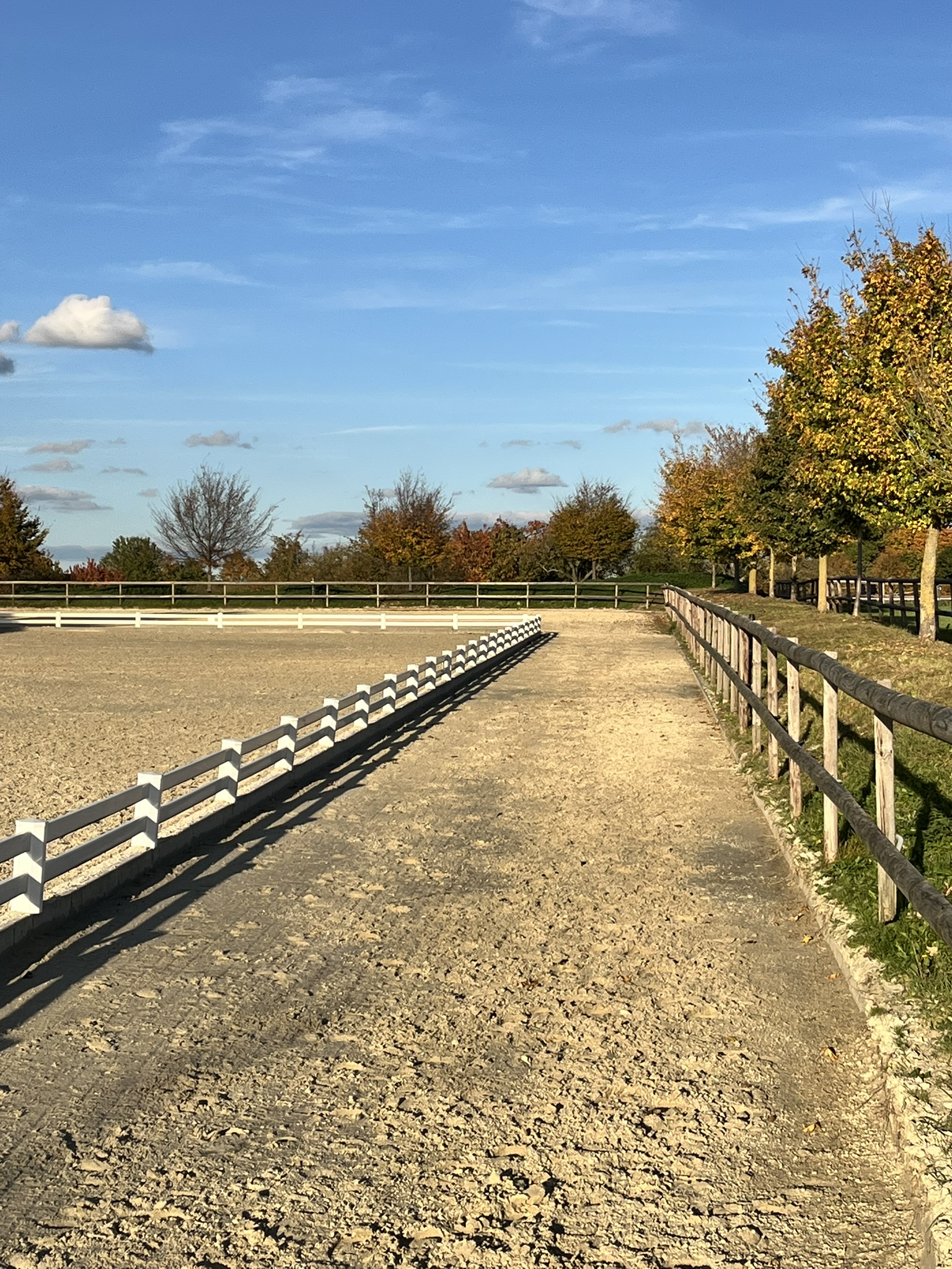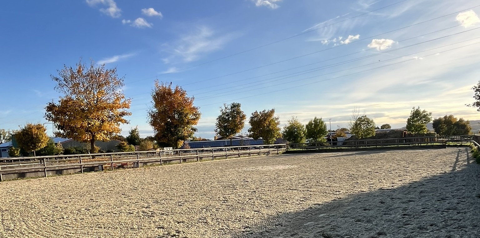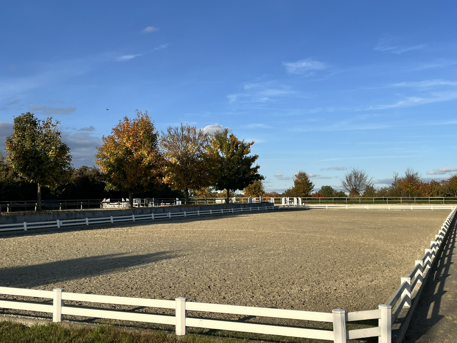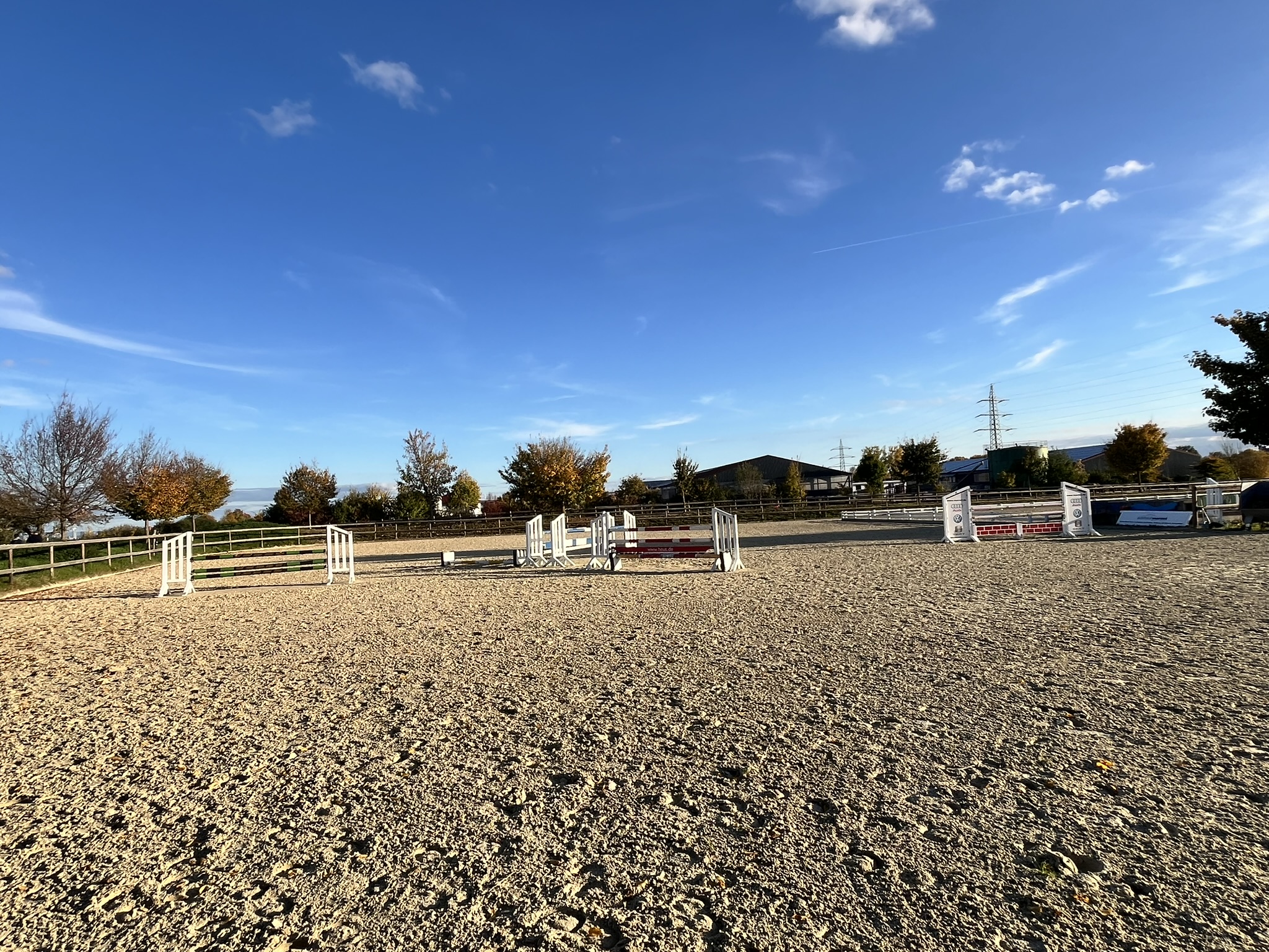 Der seitliche Außenplatz auf der anderen Seite des Walls - hier darf auch longiert werden |